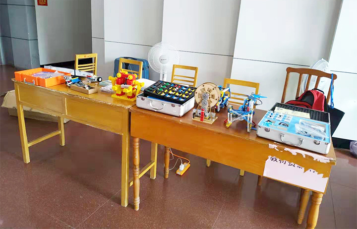 在开会期间,常州思泰姆教育科技有限公司也在大厅布置了展会。展品是我们的奇乐方、HiRa和逐日三大系列套件,以及由这些套件搭建而成的智能小车蝌蚪号、可遥控小车、手势识别小车和大颗粒挥手机器人等,除此之外还有与北师大联合开发并由我们制造生产的MixGo和EX-源、Scratch板。